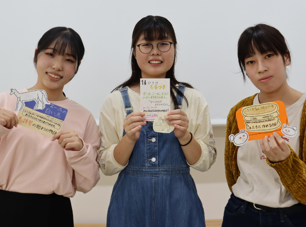 身体を使う遊びや運動、絵本の魅力をまとめる絵本ノート、身近なものを使う造形遊びなどで、現場で役立つスキルを習得します。実習やボランティアの機会が多く、実践力が身につきます。